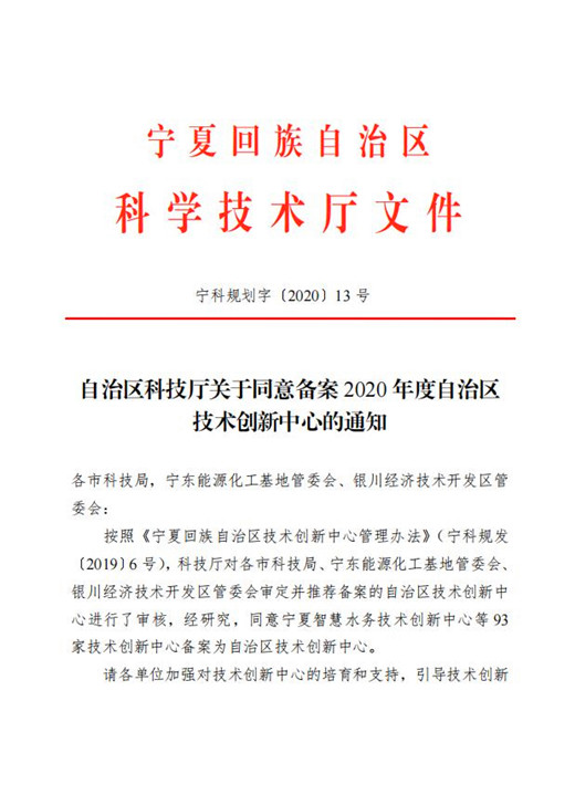 2020年度自治區(qū)技術創(chuàng)新中心