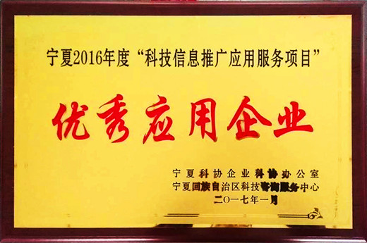 寧夏2016年度“科技信息推廣應(yīng)用服務(wù)項目”優(yōu)秀應(yīng)用企業(yè)