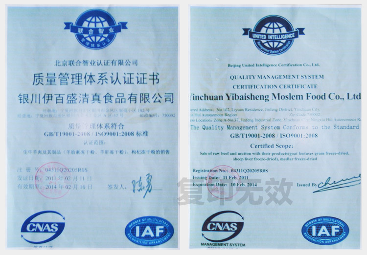HACCP證書(shū)中文版正本