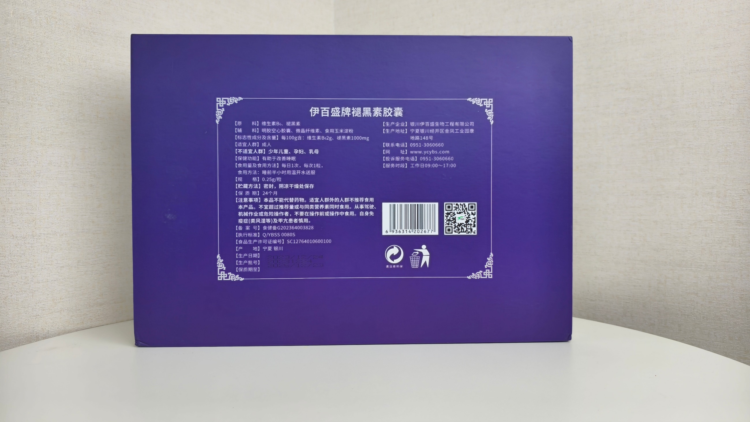 【標志性成分及含量】每100g含:維生素B62g、褪黑素1000mg